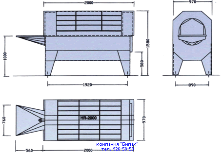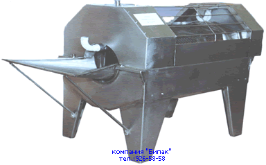 Машина состоит из двух частей. В наружной неподвижной части расположен поддон для сбора воды. Внутри неподвижной части вращается шестигранный барабан из нержавеющей стали с винтовой поверхностью, обеспечивающей продвижение рыбы к выпускному отверстию. Вращение барабана обеспечивается 4 роликами на стальных осях.